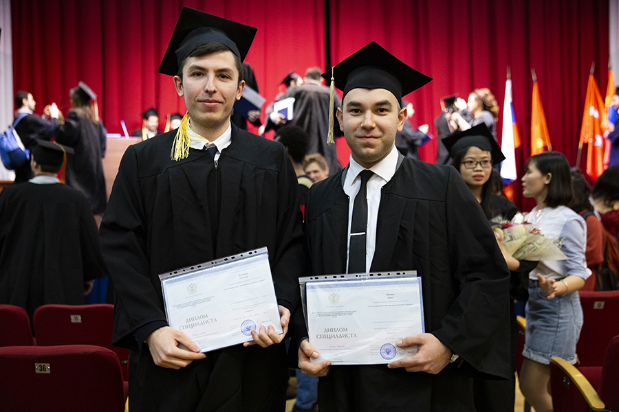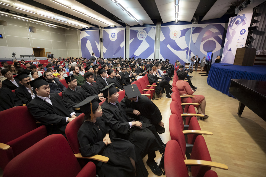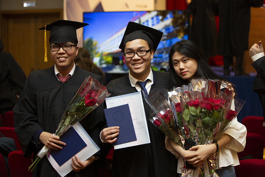Молодых людей приветствовали и другие почетные гости, пожелавшие им дальнейших успехов. Выпускники показали себя и с творческой стороны: после вручения дипломов ребята из Замбии исполнили песни на русском языке, а девушки из Вьетнама представили зажигательный танец.