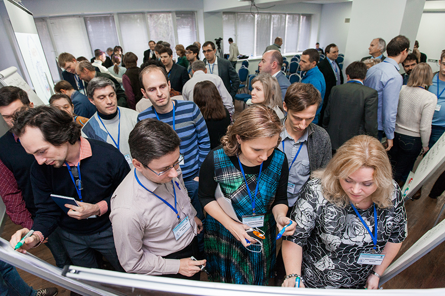 Необходимо было провести анализ ситуации в исследовательской деятельности МИФИ, зафиксировать проблемы и затруднения в рамках тематического фокуса групп, провести обсуждение и определить целевую модель. Еще позже, работая в группах, участники определили ключевые шаги по трансформации исследовательской деятельности НИЯУ МИФИ, а также планирование работ на 2015-2020 гг., после чего состоялось очередное пленарное заседание.
