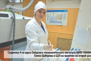 В ЦЗЛ созданы все условия для серьёзных научных исследований, для написания глубокой творческой работы. Выпускница физико-технологического института Томского политехнического университета, будущий инженер-технолог Екатерина Семендеева приехала на «Маяк» на преддипломную практику. Сюда она попала неслучайно: о «Маяке» ей рассказали старшекурсники, которые также были здесь на практике, а теперь работают на предприятии. Тема её работы связана с актуальной для «Маяка» проблемой исследования сорбентов на взрыво- и пожаробезопасность.