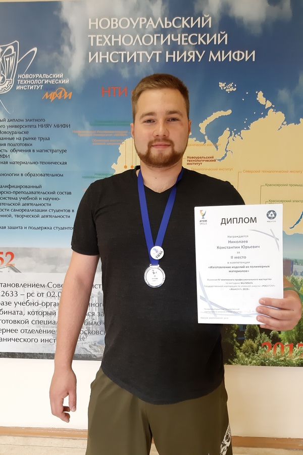 Студент третьего курса НТИ НИЯУ МИФИ Константин Николаев, обучающийся по направлению «Конструкторско-технологическое обеспечение машиностроительных производств», занял второе место на IV Отраслевом чемпионате AtomSkills 2019 в компетенции «Изготовление изделий из полимерных материалов».