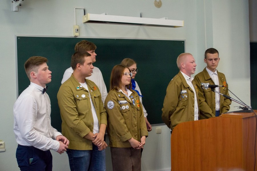 Студентам были представлены и поздравили всех с праздником заместитель руководителя по научной работе Валерий Борисенок, заместитель руководителя по учебной работе Тимофей Соловьев и заместитель руководителя по общим вопросам Константин Евланов.