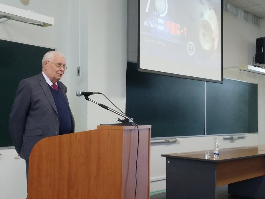 С интересным и содержательным рассказом об истории создания в максимально кратчайшие сроки и в труднейших условиях послевоенного времени советского атомного оружия и испытании ядерного заряда РДС-1, о роли в историческом событии планетарного масштаба ученых страны и Российского федерального ядерного центра (тогда КБ-11), о вкладе в события тех лет советской атомной разведки и о многом другом выступил перед студентами 1 курса почётный гость института, один из основателей и первый директор Музея ядерного оружия РФЯЦ-ВНИИЭФ Виктор Лукьянов.