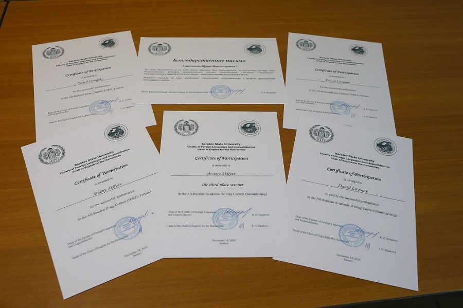 Факультет иностранных языков и лингводидактики Саратовского национального исследовательского государственного университета им. Н.Г. Чернышевского провёл VIII Всероссийский конкурс академического письма на английском языке, посвященный 110-летию Саратовского государственного университета. Конкурс проводился в двух номинациях: «эссе» в формате международного экзамена TOEFL (задание «Independent Writing») и «аннотация научно-популярной статьи». Для иногородних студентов была предусмотрена дистанционная форма участия.