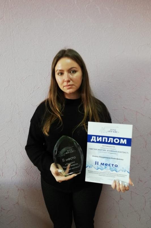 По итогам конкурса Алёна Акинфиева заняла второе призовое место в категории «Студенты» и получила грант в размере 50 000 рублей на продолжение исследовательской работы.
