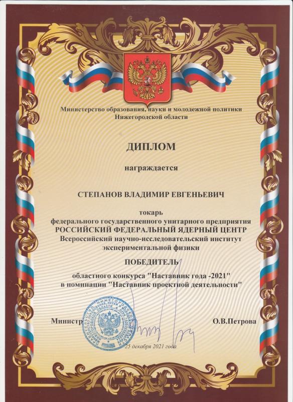 Студент Саровского физико-технического института (СарФТИ) НИЯУ МИФИ стал победителем конкурса «Наставник года» Нижегородской области в номинации «Наставник проектной деятельности». В конкурсе, впервые организованном в 2021 году, приняли участие более 150 человек.