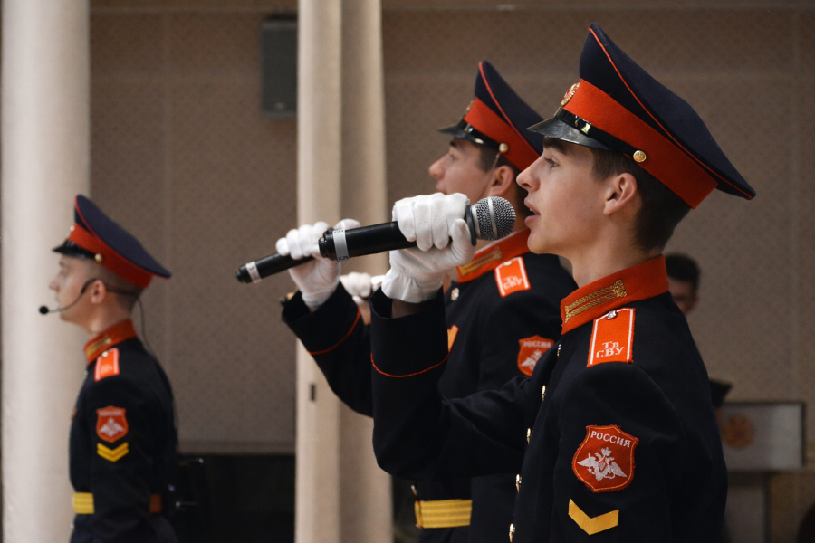 Одним из самых ожидаемых гостей церемонии стал солист хора и выпускник Национального исследовательского ядерного университета «МИФИ» Иван Дятлов, который уже не первый год выступает перед курсантами училища.