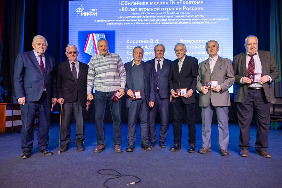 За многолетний добросовестный труд, значительные успехи в профессиональной деятельности, большой личный вклад в развитие отраслевого ветеранского движения и в связи с 80-летием атомной отрасли России приказом Госкорпорации «Росатом» юбилейной медалью были награждены: