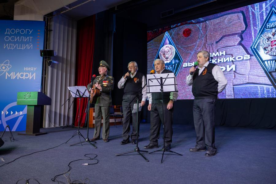 Вчера, 19 февраля, в Актовом зале МИФИ состоялось торжественное собрание Совета ветеранов МИФИ, посвященное Дню защитника Отечества. Отметить праздник собрались сотрудники университета, студенты и два музыкальных коллектива вуза – «Братина» и «Quanto di Stella». Вел вечер выпускник МИФИ 1984 года, полковник космических войск Сергей Брусницын.