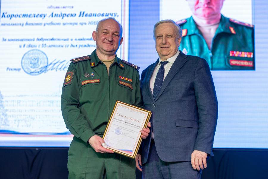 За многолетний добросовестный и плодотворный труд и в связи с 55-летием со дня рождения Благодарностью НИЯУ МИФИ был отмечен начальник Военного учебного центра при НИЯУ МИФИ, полковник Андрей Коростылев.