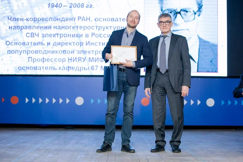 Традиционным почетным гостем конференции стала вдова ученого, Юлия Мокерова – учредитель Фонда поддержки образования и науки имени члена-корреспондента РАН, профессора В.Г. Мокерова. Фонд ежегодно назначает стипендии молодым ученым и на пленарном заседании конференции было объявлено, что очередным стипендиатом Фонда стал аспирант ИСВЧПЭ РАН Богдан Жмудь. Напомним, что в прошлом году стипендиатами Фонда стали аспирант ИСВЧПЭ РАН Александр Долгов и инженер Центра радиофотоники и СВЧ-технологий ИНТЭЛ НИЯУ МИФИ Андрей Горелов.