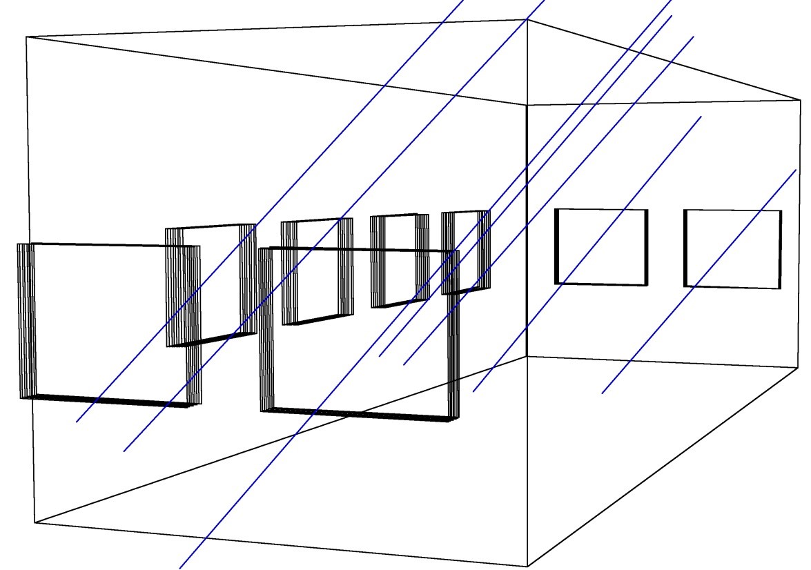 Подпись к изображению: Регистрация нескольких треков мюонов в координатно-трековом детекторе ДЕКОР
