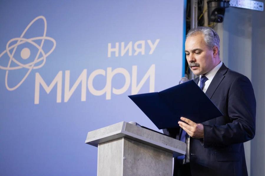 Выступает и.о. директора ИМО НИЯУ МИФИ Андрей Черкасский